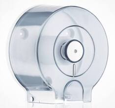 Toalettpapír adagoló, mini közületi toalettpapírokhoz. Átlátszó adagolóként jól látható a töltöttségi szint. Törésálló műanyagból készült, speciális rendszerkulccsal zárható.
